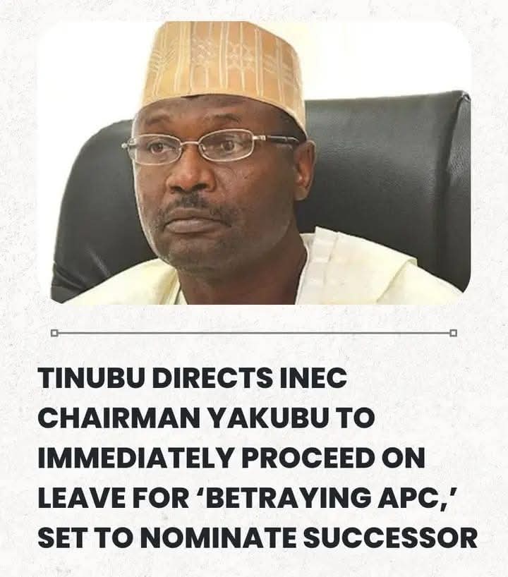 So the news is flying — Tinubu has directed INEC Chairman Mahmood Yakubu to “proceed on leave” for betraying APC. My people, is this not the funniest tragicomedy of the century?