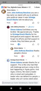 This was a follow up to the discussion where Ocheiga Enoch Oloche talked to Simon Adama about Hon Ikwulono as the best candidate. In that comment Hon. Ikwulono Appreciated them, saying he wouldn’t take that support for granted, and in addition to the communication at the comment section of that post Ocheiga Enoch expressed his faith in the Honourable as he further appreciated the Adama as thus: